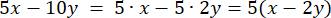 W tym zadaniu zapisz 5x – 10y w postaci iloczynu jednomianu i sumy algebraicznej.