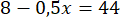 Najpierw odejmij od 8 połowę x, a otrzymaną różnicę przyrównaj do 44: