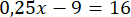 Najpierw odejmij 9 od 0,25x, a otrzymaną różnicę przyrównaj do 16: