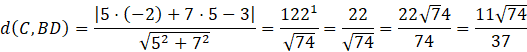Pole czworokąta składa się z dwóch pól trójkątów: trójkąta ABD i trójkąta BCD. Aby obliczyć pole całego czworokąta, musisz obliczyć osobno pole jednego i drugiego trójkąta, a następnie je dodać. Aby policzyć pola trójkątów, oblicz je ze wzoru