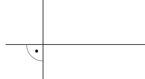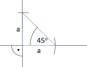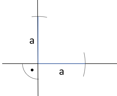 Odmierz cyrklem na prostych dwa odcinki o jednakowych długościach i początkach w punkcie przecięcia prostych.