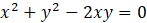 Aby naszkicować szukany zbiór punktów zauważ, że lewą stronę można zapisać za pomocą wzoru skróconego mnożenia. Kwadrat dowolnej liczby rzeczywistej jest równy 0 wtedy i tylko wtedy, gdy liczba ta jest równa 0. Zapisz równanie, po którego rozwiązaniu otrzymasz wzór funkcji liniowej y = x.