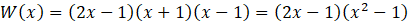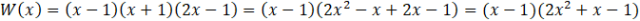 Wielomian W(x) jest podzielny przez następujące wielomiany stopnia 2: x2 – 1, 2x2 – 2x + 1, 2x2 + x – 1.