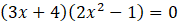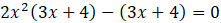 Aby rozwiązać równanie, pogrupuj wyrazy parami, a następnie z każdej pary wyłącz przed nawias wspólny czynnik. Wyłącz przed cały wielomian czynnik 3x + 4. Następnie zapisz alternatywę równań wynikających z obu czynników lewej strony. Następnie rozwiąż każde równanie osobno. Na koniec zsumuj otrzymane równania do jednego zbioru.
