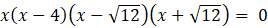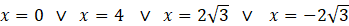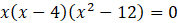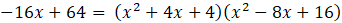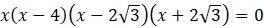 Aby wyznaczyć punkty przecięcia wykresów zapisz układ równań składający się ze wzorów obu funkcji. Następnie rozwiąż układ metodą podstawiania. Otrzymane równanie wielomianowe rozwiąż przez wyłączenie wspólnego czynnika x przed nawias. Następnie pogrupuj pozostałe w nawiasie wyrazy i wyłącz czynnik x – 4. Zapisz wielomian w postaci iloczynowej, z którego odczytaj możliwe rozwiązania. Na podstawie wyznaczonych odciętych punktów wyznacz rzędne, przez podstawienie współrzędnych do wzoru prostej.