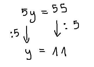 Przy strzałce zapisano : 5. Obie strony równania podziel przez 5.