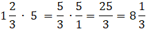 Przed wykonaniem mnożenia liczbę mieszaną zamień na ułamek niewłaściwy. Aby pomnożyć ułamki, pomnóż licznik pierwszego ułamka, przez licznik drugiego i mianownik pierwszego ułamka przez mianownik drugiego. Wynik przedstaw w najprostszej postaci.