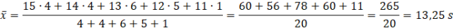 Średni czas biegu chłopców wynosi zatem 13,25 s.