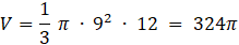 W tym zadaniu musisz obliczyć objętość stożka o tworzącej długości 15 cm i wysokości długości 12 cm.