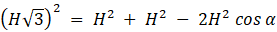 W tym zadaniu musisz obliczyć miarę kąta rozwarcia stożka, który wpisano w walec o wysokości H w taki sposób, że podstawa stożka jest podstawą walca, a wierzchołek stożka jest środkiem drugiej podstawy walca, przy czym pola powierzchni bocznych walca i stożka są równe.