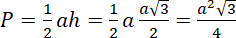 Sześciokąt foremny można podzielić na 6 trójkątów równobocznych o długości boku równej długości boku sześciokąta. Pole jednego trójkąta oblicz ze wzoru: .