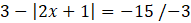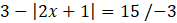 . Są dwie liczby, których odległość od 0 na osi liczbowej jest równa 15 i są nimi 15 oraz –15, zatem: