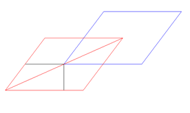 Jako x oznaczymy długość wektora, o który trzeba przesunąć romb wzdłuż przekątnej: