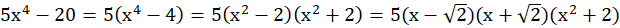 Wyciągasz 5 przed nawias i stosując dwukrotnie wzór na różnicę kwadratów sprowadzasz wyrażenie do postaci iloczynowej.