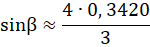 Korzystając z twierdzenia sinusów, wyznaczasz miarę kąta β.