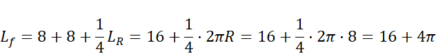 Zauważ, że obwód wskazanej figury jest sumą dwóch odcinków o długości 8 oraz ćwiartki okręgu o promieniu R.
