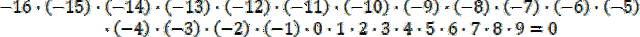 Znajdź wszystkie liczby całkowite leżące na osi liczbowej pomiędzy -16,56 i 9,4, a następnie oblicz ich iloczyn.
