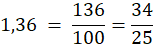 W tym zadaniu musisz zamienić ułamek 1,36 na ułamek zwykły.