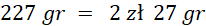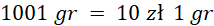100 gr = 1 zł . Podzieliliśmy każdy wynik przez 100.