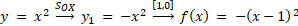 Do określenia przedziałów monotoniczności funkcji kwadratowej potrzebujemy znać pierwszą współrzędną wierzchołka paraboli p oraz współczynnik a – w tym przypadku jest on ujemny, więc ramiona są skierowane w dół. Szkicowanie wykresu funkcji f rozpoczynamy od funkcji wyjściowej y = x2, którą wpierw odbijamy symetrycznie względem osi OX, a następnie przesuwając nowo powstałą funkcję y1 o odpowiedni wektor.