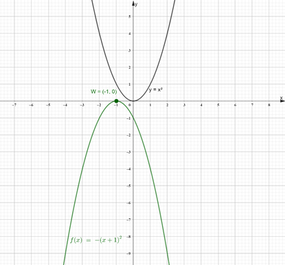 Wyznacz przedziały monotoniczności funkcji kwadratowej o równaniu f(x) = – (x + 1)2, a następnie naszkicuj jej wykres.