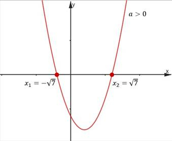 Nierówność kwadratową rozwiązujemy analogicznie jak równanie – w tym przypadku stosujemy WSM: a2 – b2 = (a – b)(a + b). Dodatkowo określamy znak współczynnika a i rysujemy pomocniczy wykres, z którego odczytujemy rozwiązania.