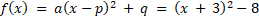 Dla funkcji kwadratowej f(x) = x2 + 6x + 1 wyznacz wierzchołek jej paraboli.