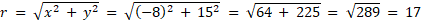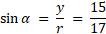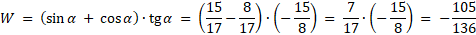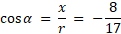 Podany punkt P(-8, 15) znajduje się na ramieniu końcowym kąta wypukłego α. Należy obliczyć wartość wyrażenia