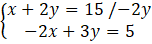x = 15 – 2y = 15 – 2 ∙ 5 = 15 – 10 = 5