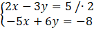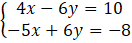 4x – 6y – 5x + 6y = 10 – 8