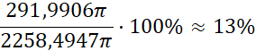 Objętość największej piłki jest większa od objętości najmniejszej piłki o 13%.
