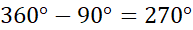 Zaznaczony kąt jest kątem wklęsłym. Jego dopełnieniem do kąta pełnego jest kąt prosty, więc zaznaczony kąt ma miarę: