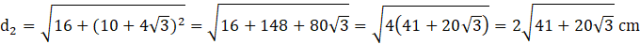 Obliczamy najpierw długość przekątnej, aby później skorzystać ze wzoru Pitagorasa i obliczyć długość boku. Korzystamy również z własności funkcji trygonometrycznych, aby wyznaczyć długość ramienia.