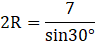 Wylicz długość promienia okręgu opisanego na trójkącie ABC, jeśli wiadomo że a = 7, β =