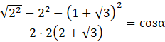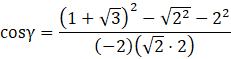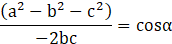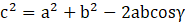 Dla dowolnego trójkąta kwadrat jednego z boków jest równy sumie kwadratów dwóch pozostałych odjąć podwojony iloczyn długości tych boków oraz cosinusa kąta między nimi.
