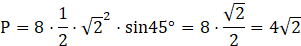 Wyznacz pole ośmiokąta foremnego, gdzie najkrótsza przekątna ma długość 2 cm.