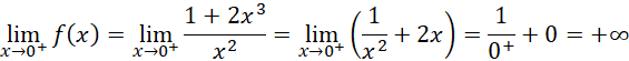 Funkcja jest określona wszędzie poza zerem. Asymptota pionowa obustronna: