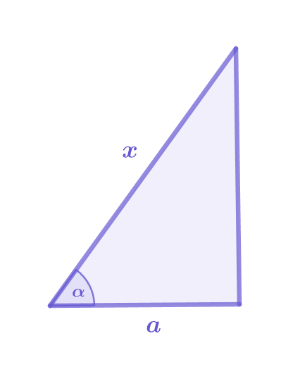 Sporządź przykładowy rysunek rozpatrywanego trójkąta i oznacz szukaną długość przeciwprostokątnej jako x: