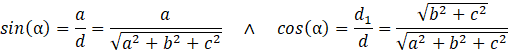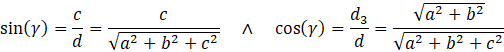 Dany jest prostopadłościan o długościach krawędzi 𝑎, 𝑏, 𝑐. Przeprowadź przekątną 𝑑 w tym prostopadłościanie. Wyznacz trzy płaszczyzny zawierające pary odcinków: przekątną prostopadłościanu oraz przekątne kolejnych ścian (𝑎 ⨉ 𝑏, 𝑎 ⨉ 𝑐, 𝑏 ⨉ 𝑐). Zauważ, że w płaszczyznach zawarte są trójkąty prostokątne. Przekątne ścian według twierdzenia Pitagorasa mają długość równą: