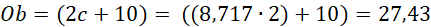 Obwód trójkąta oblicz ze wzoru: Ob=(2b+10)