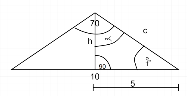 Zauważ, że wysokość dzieli kąt między ramionami na dwa. Zatem:
