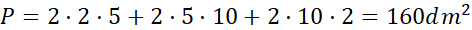 W tym zadaniu musisz obliczyć pole powierzchni całkowitej, jeśli jego krawedzie to 2 dm, 5 dm, 10 dm.