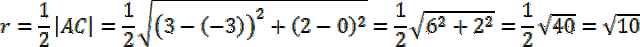 Zacznij od obliczenia długości promienia okręgu, korzystając z faktu, że promień okręgu wpisanego w kwadrat to połowa długości jego boku. Następnie wyznacz współrzędne punktu S, wiedząc, że środek okręgu wpisanego w kwadrat to jednocześnie środek jego przekątnej. Następnie znając współrzędne punktu S i wartość r, zapisz równanie okręgu.