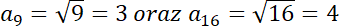 Zatem wyrazy ciągu mieszczące się w przedziale (3; 4) to: