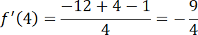 , a następnie określ jej pochodną, a także jej dziedzinę. Wyznacz wartości pochodnej w punktach 1 i 4.