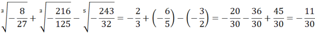 Zastanów się jakie liczby podniesione do trzeciej potęgi dają liczby w licznikach i mianownikach ułamków. W przypadku pierwiastka piątego stopnia jego wynikiem jest