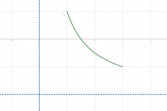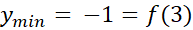 Wybieramy konkretny przedział w narysowanej funkcji i widzimy, że najmniejszą wartość funkcja osiąga dla x = 3 i jest to y = -1
