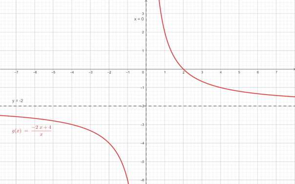 Pamiętaj, że wyrażenie w mianowniku nie może się zerować – tym sposobem określisz dziedzinę. Zbiór wartość możesz określić na podstawie wykresu lub tego, że funkcja nie przyjmuje jedynie wartości z asymptoty poziomej y = -2.