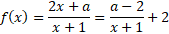 Przesuń funkcję g o wektor, którego składowe to asymptoty funkcji f. Porównaj liczniki obu ułamków funkcji f i g – tym sposobem obliczysz a.
