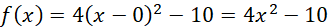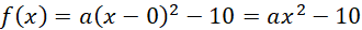 W tym zadaniu należy zapisać wzór funkcji, której wykresem jest parabola o wierzchołku W = (0, -10) i przechodząca przez punkt P = (2, 6).
